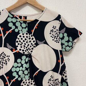 Mona Lisa Artsy Short Sleeve Panel Dress Elastic Hem Cotton Flax Sz M/L