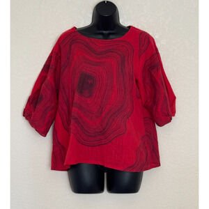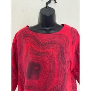 Mona Lisa India Tunic Blouse Red Oversized Cotton Lagenlook Minimalist Casual, M