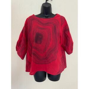 Mona Lisa India Red Ring Print Oversized Lagenlook Tunic Top Linen Gauze OS