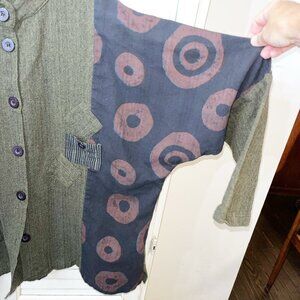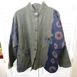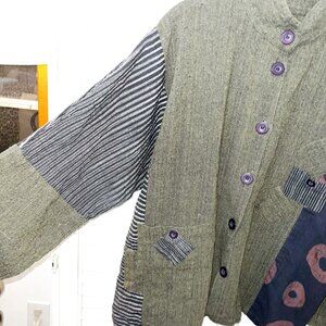 Mona Lisa Mixed Textile Art-To-Wear Boxy Lagenlook Cotton Tunic Jacket M/ L