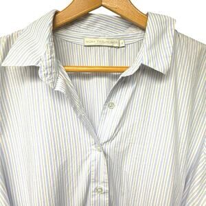 Mona Thalheimer Midi Shirt Dress Size XL White Blue Beige Stripe Button Up