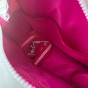 NWT Monaco Vegan Leather Pickleball Sling Backpack, White with Pink Accents