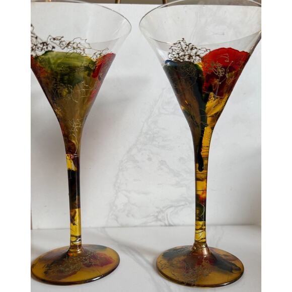 Monaco by Monarch Martini Glasses (2)Hand Painted Romania Crystal 7.25x3.25