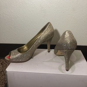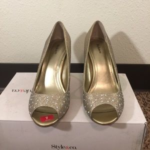 Let your outfit sparkle with this monaee pump with brilliant rhinestone accent, round peep toe pump 3/1/4" heel