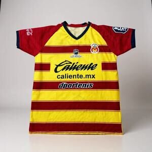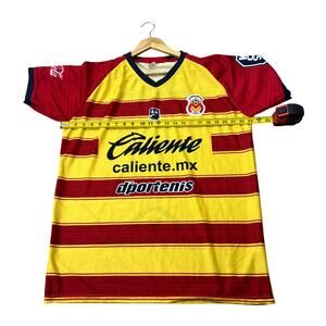 Show your love for Monarcas Morelia with this vibrant red and yellow soccer jersey! This jersey is in great condition and fits sizes L/XL. The measurements are 23 inches in width and 31 inches in length. A perfect addition to any soccer fan's wardrobe or sports memorabilia collection. Grab it now to show your team spirit! All sales are final.