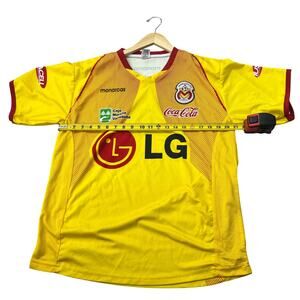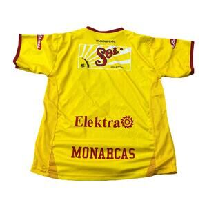 Score a stylish goal with this vibrant Monarcas Morelia yellow soccer jersey! This jersey is in great condition and ready for game day or casual wear. The bright yellow color will make you stand out in the crowd.