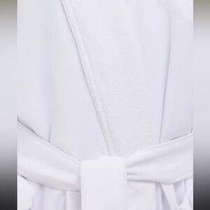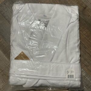NIB The "gold standard" Deluxe microfiber robe. Featured in the best hotels and spas, these peached microfiber robes are designed for the ultimate in luxury, comfort and toughness. Soft, yet extremely durable Deluxe microfiber (brushed) outer shell. Complemented by a super soft and absorbent 80% cotton/20% poly loop terry inner liner. All robes have white piping on collar and pockets. The shoulders are padded for a tailored look that adds even more comfort.