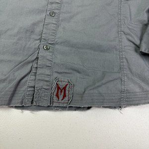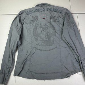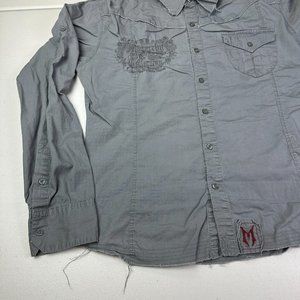 Monarchy Mens Size XL Embroidered Biker Moto Button Up Gray Shirt Long Sleeve