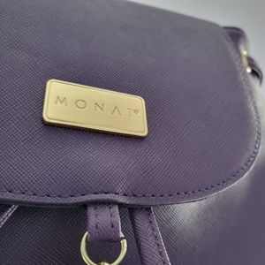 Monat Faux Leather Backpack Tote Bag Purse Purple Gold