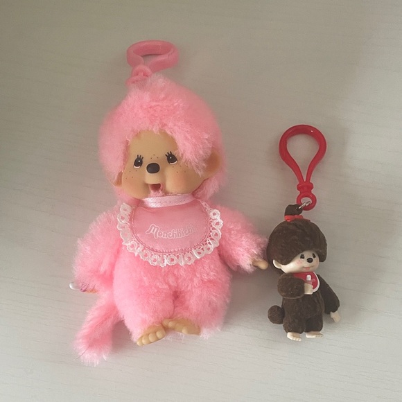 Includes a pink monchhichi pendant and a smaller brown monchhichi charm. Both in great condition, just trying to decrease my collection.