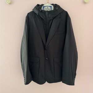 Moncler timeless silhouette Blazer style down jacket with hood. Lightly worn. Nice and lightweight yet will keep you warm.