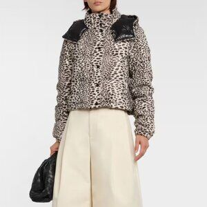 Moncler Animal Print Cropped Down Puffer Jacket with Black and Cream Details.