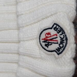 This Moncler ribbed beanie is the fashion statement of the day. There are no tags. It is in excellent condition. The cute pom pom probably needs a little puffing.