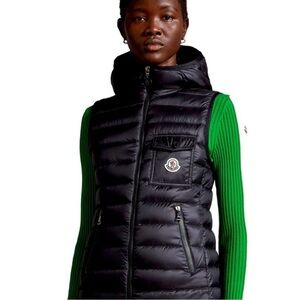Stylish black hooded Moncler vest. I love offers!!
