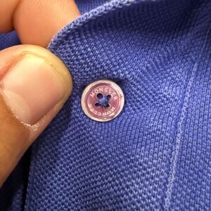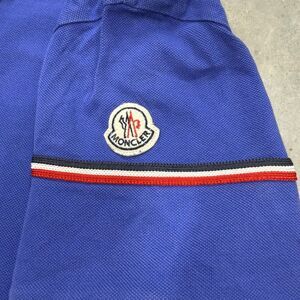 Stylish Moncler polo shirt. Rich blue color. Signature logo on sleeve.