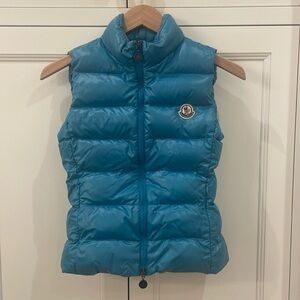 Moncler Blue/Teal Down Vest—GORGEOUS! Excellent Condition—Size 12 Years. Great condition! Beautiful color! Color is a little lighter than my photos depict.