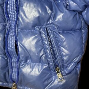 The Moncler Boys Puffer Jacket in size 3Y is a stylish and practical outerwear option for young boys. Made with 100% polyester outer shell material and filled with down insulation, this jacket is perfect for keeping your little one warm during the winter months. The long sleeves, zip closure, and hooded design make it easy to put on and take off, while the solid blue color and Moncler branding add a touch of sophistication to the casual style. Ideal for everyday wear or winter activities