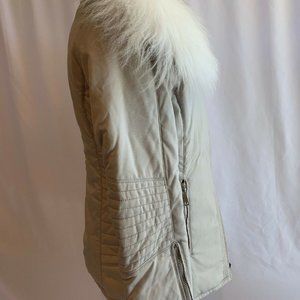 New Authentic Moncler Womens Choisia Goat Fur Collar Down jacket in size 1 (Small). Color is Stone and will be like the stock picture shown. MSRP $1810.