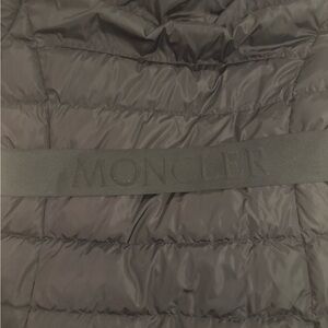 Elegant Moncler jacket with quilted design. Dark charcoal color. Ideal for winter wear.