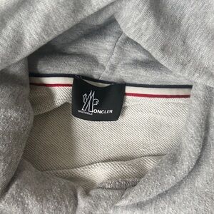 Cozy gray hoodie with distinctive black Moncler label. Ideal for everyday comfort.