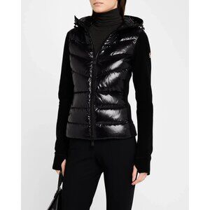 Moncler Grenoble Black Puffer Polar Fleece Hooded Zip-Up Cardigan Jacket Size XL