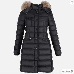 Moncler Hermifur Fox Fur Trim Quilted Down puffer coat with removable fur hood in Black Nylon.