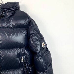 This Moncler puffer jacket offers premium warmth and comfort with its stylish design. The hooded feature provides extra protection against cold weather, while the front zipper pockets add functionality. A classic logo patch on the sleeve enhances its luxurious appeal, making it an excellent addition to any wardrobe.