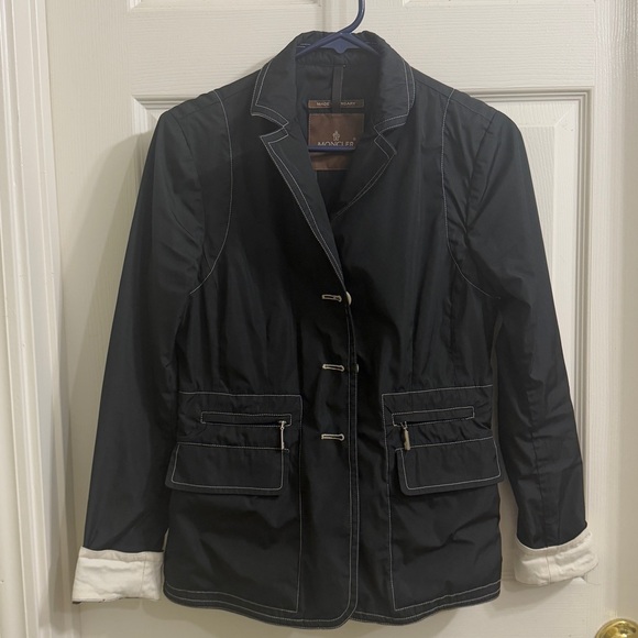 Womens Moncler jacket with foldable sleeve and collar detail. Zipped pockets and slip pocket design is very practical. Moncler size 2. Open to reasonable offers.