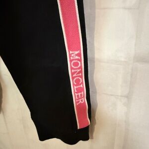 Chic black joggers with a bold pink stripe. Ideal for casual outings.