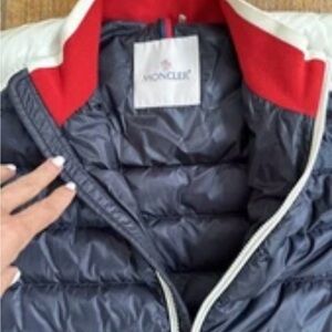 Moncler Navy and White Men's Puffer Jacket Size 5 Large