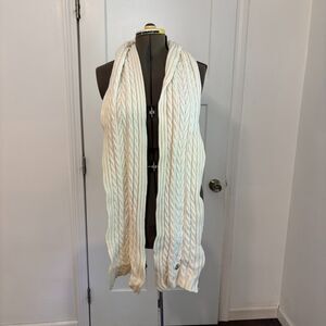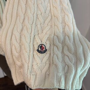 Moncler One Size Cream Off White Cable Knit 100% Virgin Wool Winter Scarf