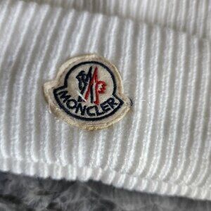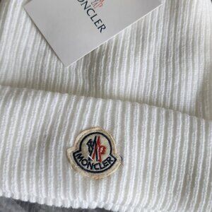 Moncler Ribbed Beanie Wool Hat white ribbed texture wool logo patch folded brim