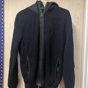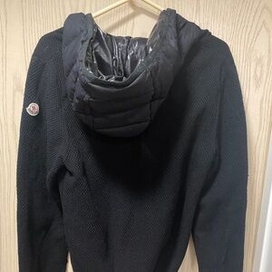 In good condition Moncler Size L Men’s zip Up Black Jacket .The item has signs of usage, loose threads. Please see photos for details and condition of the item before purchase. Message for questions or offers, all sales are final.