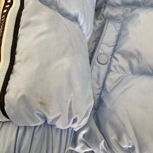 Moncler Snowsuit. Puffer jacket with Sherpa lined hood and snow pants. Barely worn, does have a few wear marks.