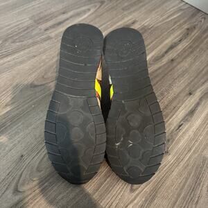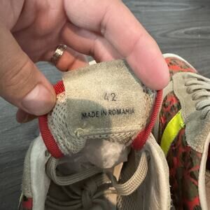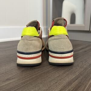 Moncler Tan Suede Red Hibiscus Floral Neon Logo Low Top Trainer Sneakers 42 US 9