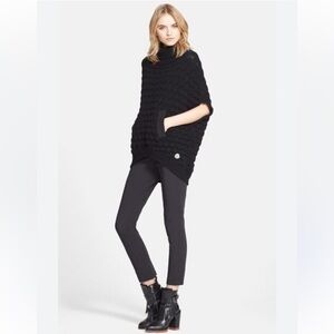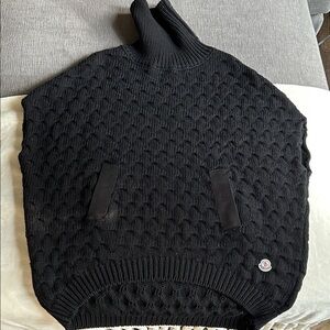Moncler Virgin Wool Turtleneck Poncho Cape Sweater in Black Size Medium