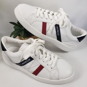 Moncler White Red Navy Monaco Sneaker Tennis Low Top Trainer NEW sz 37.5 / 7.5
