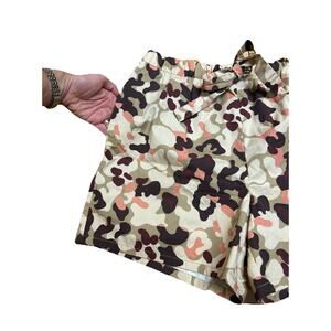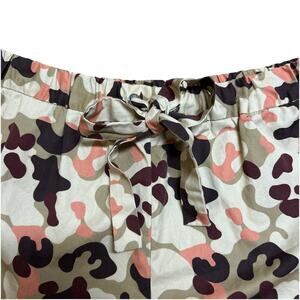 Moncler Women’s M 44 IT Shorts Tan Pink Camouflage Print Cotton High Waist Drawstring Designer Quiet Luxury