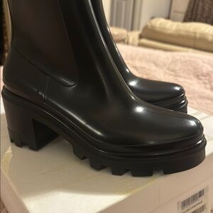 Step out in style with these sleek black ankle boots from Moncler. Perfect for any occasion, these boots offer both comfort and elegance. NEVER WORN
