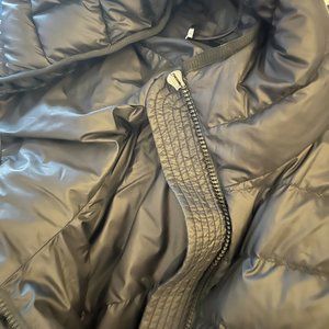 Moncler women's jacket in fair condition. The main zipper is stuck at the top of the jacket and there is a tare on the right side pocket. It does need TLC. Perfect for someone who knows how to fix zippers and Sew. Looking for serious offers only. 100% authentic