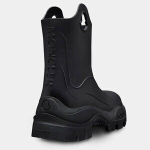 Moncler Women's Misty Black Round Toe Embossed Logo Rain Boots Size 41