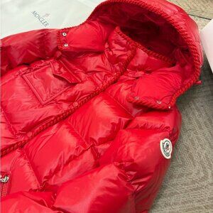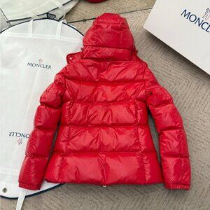 Stay warm and stylish with this Moncler women's red puffer jacket. Perfect for chilly days, this jacket combines fashion and function effortlessly.