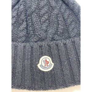 Moncler Wool Cashmere Blend Cable Knit Faux Fur Pom Pom Beanie In Black New