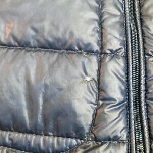 Lightweight down-filled quilted nylon longue saison jacket.