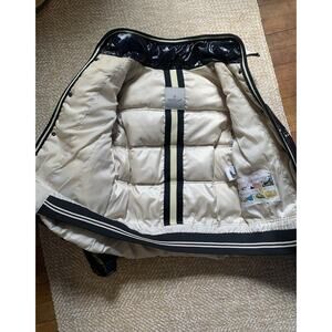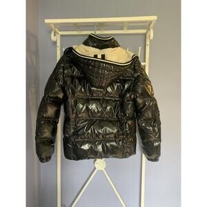 This luxurious black Moncler puffer jacket is perfect for those chilly days. Made with high-quality polyamide and filled with soft down, it will keep you warm and comfortable. The jacket features a solid pattern, long sleeves, and a regular fit, making it suitable for women of all sizes. The brand's iconic logo is prominently displayed on the jacket, adding to its designer appeal.