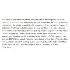 Moncler x Adidas Beiser Down Jacket Men's 3/ L Blue Hooded Full Zip NWT $2075