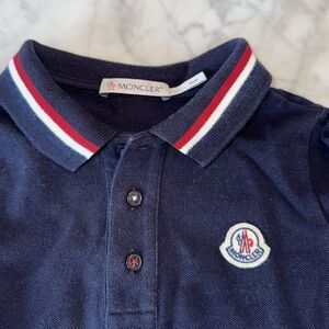 Experience timeless style with the Moncler blue long sleeve polo shirt, featuring a classic collar and sporty red and white striped trim. Crafted from a comfortable knit material, this polo embodies a preppy aesthetic with its elegant design and subtle logo detail on the chest.