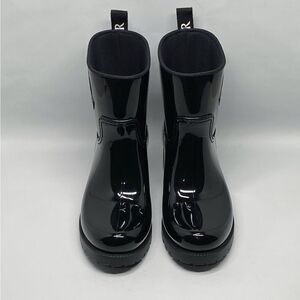 These patent PVC boots have an embossed logo emblem that finishes with a signature feel.