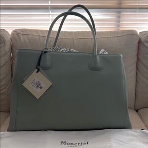 Moncrief London Serrena Frosty Green Tote Bag 100% Italian Leather