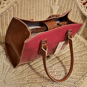 Gorgeous Pink and Tan color block, imitation leather purse. NWT. One small scuff on the bottom.